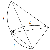 与えられた領域は立方体から \(R _ t\) を \(8\) つ除いた立体なので, 求める体積は \[ 1^3 -8 \cdot \dfrac{1}{3} \left( \dfrac{1}{2} t^2 \right) t = 1 -\dfrac{4}{3} t^3 \]2* \(\dfrac{1}{2} \lt t \leqq 1\) のとき