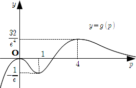 [1] の右辺を \(g(p)\) とおく. \[\begin{align} g'(p) & = (3p^2-4p) e^{-p} -(p^3-2p^2) e^{-p} \\ & = -p (p^2-5p+4) e^{-p} \\ & = -p (p-1)(p-4) e^{-p} \end{align}\] したがって, \(g(p)\) の増減は下表のようになる. \[ \begin{array}{c|ccccccccc} p & ( -\infty ) & \cdots & 0 & \cdots & 1 & \cdots & 4 & \cdots & ( \infty ) \\ \hline g'(p) & & + & 0 & - & 0 & + & 0 & - & \\ \hline g(p) & ( -\infty ) & \nearrow & 0 & \searrow & -\frac{1}{e} & \nearrow & \frac{32}{e^4} & \searrow & (0) \end{array} \] なので \(y = g(p)\) のグラフの概形は下のようになる.