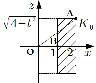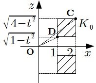 \(K _ 0\) の平面 \(y = t \ ( 0 \leqq t \leqq 2 )\) による断面図から, \(L\) の断面積を求めていく.