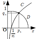 \(C : \ y=\log (nx)\) , \(D : \ \left( x-\dfrac{1}{n} \right)^2+y^2=1\) とおく.