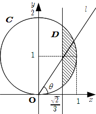 \(C : \ x^2 +(y-1)^2 = 1\) , \(\ell : \ y =( \tan \theta ) x\) とおく.