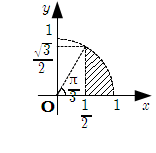 この面積を \(U(t)\) とおく. 各点の座標について \[ \text{Q} \ \left( \sqrt{1-t^2} , -t , 0 \right) , \quad \text{R} \ \left( \sqrt{3} t , -t , 0 \right) \] また, S は PB を \(1 -t : t\) に内分するので \[ \text{S} \ \left( \sqrt{3} (1-t) , -t , 2(1-t) \right) \] したがって \[\begin{align} U(t) & = \left( \sqrt{3} t -\sqrt{1-t^2} \right) \cdot 2(1-t) \\ & = 2\sqrt{3} ( t -t^2 ) -2\sqrt{1-t^2} +2t \sqrt{1-t^2} \end{align}\] これを用いれば \[\begin{align} W & = \displaystyle\int _ {\frac{1}{2}}^1 U(t) \, dt \\ & = 2\sqrt{3} \displaystyle\int _ {\frac{1}{2}}^1 ( t-t^2 ) \, dt -2 \underline{\displaystyle\int _ {\frac{1}{2}}^1 \sqrt{1-t^2} \, dt} _ {[1]} \\ & \qquad -\displaystyle\int _ {\frac{1}{2}}^1 \sqrt{1-t^2} \left( 1-t^2 \right)' \, dt \end{align}\] ここで, [1] は下図斜線部の面積と等しいので
